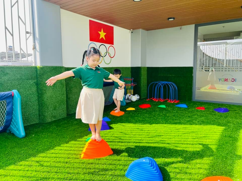 Lớp học được trang bị các thiết bị hiện đại như màn hình tương tác và hệ thống máy chiếu, giúp các giờ học trở nên sinh động hơn. Ngoài ra, các hoạt động vận động ngoài trời, bơi lội hoặc thể dục nhịp điệu cũng giúp trẻ phát triển thể chất và tăng cường sức khỏe.