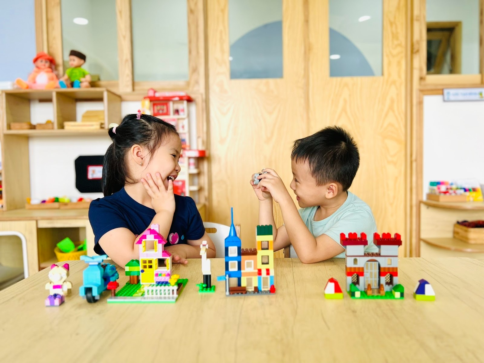 Môi trường mầm non thân thiện, nơi trẻ thường xuyên trò chuyện, chơi nhóm và tham gia các hoạt động chung, sẽ giúp trẻ tự tin hơn trong giao tiếp mà không cảm thấy áp lực hay e dè.